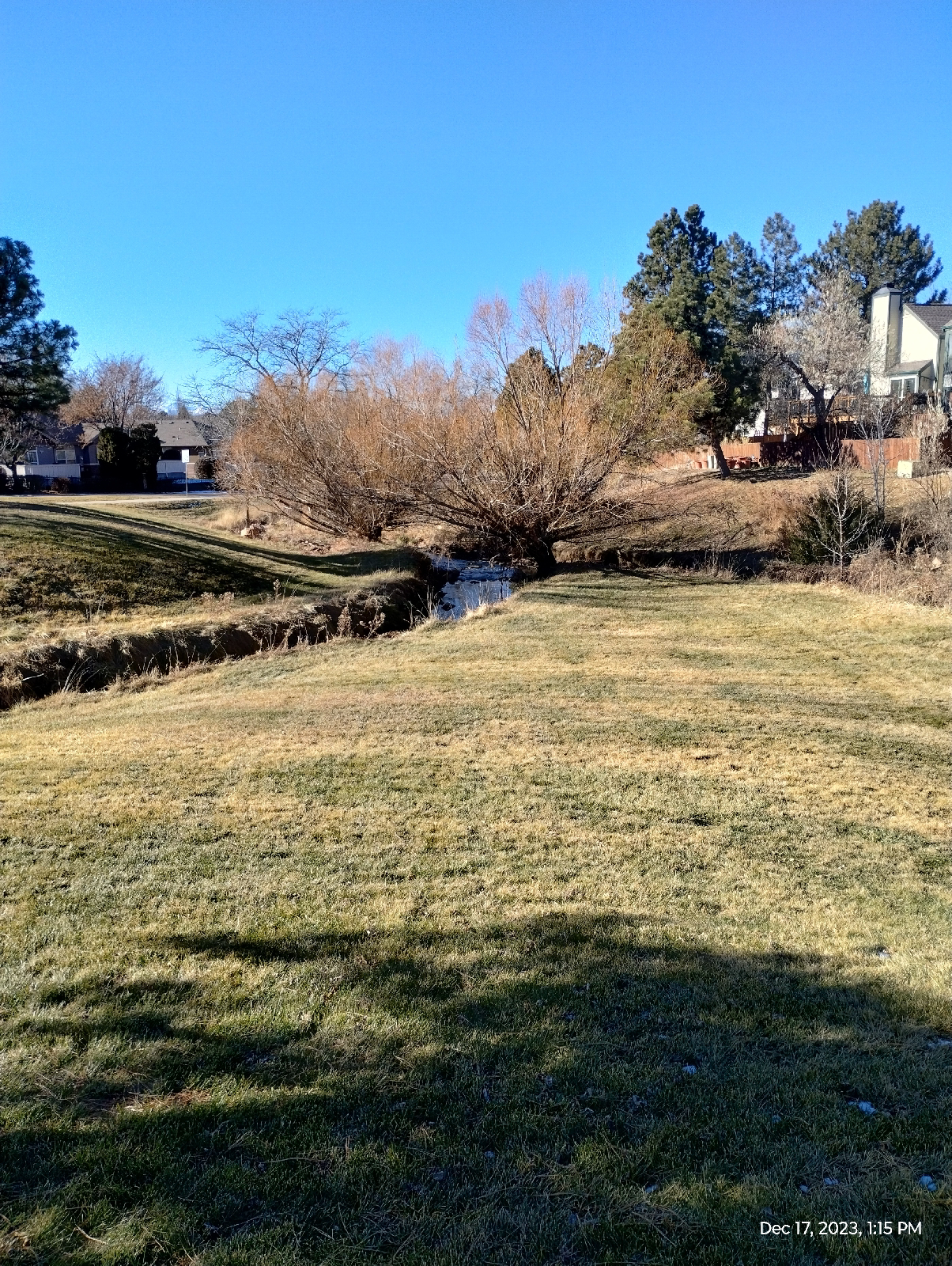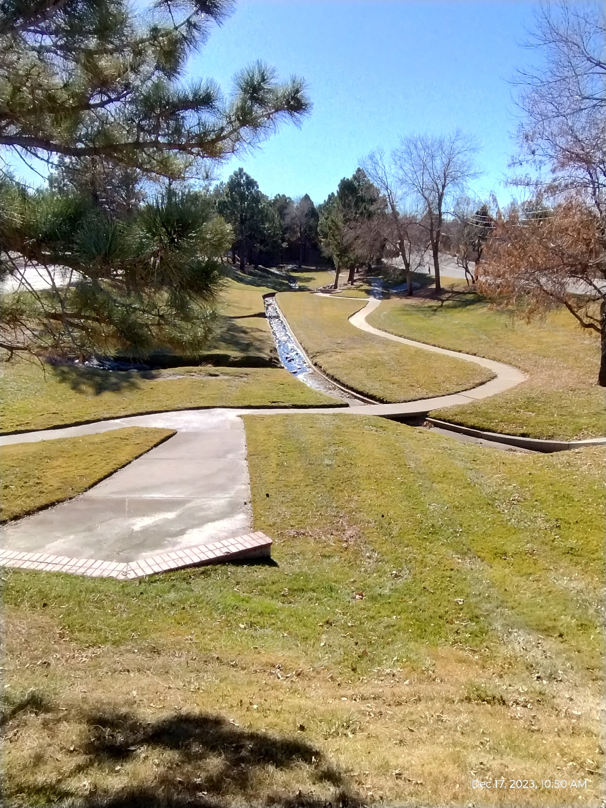 Little Dry Creek is fed by runoff and the Dawson aquifer. As water falls on the ground and pavement around Centennial, Colorado it has to go somewhere. The two main "drainages ditches" are Little Dry Creek and Willow Creek. It can also deep into the porous sandstone of the Dawson, Arapahoe, and Denver formations in the Denver Basin and pour out at the many springs in the area. One is just east of Yosemite Street.